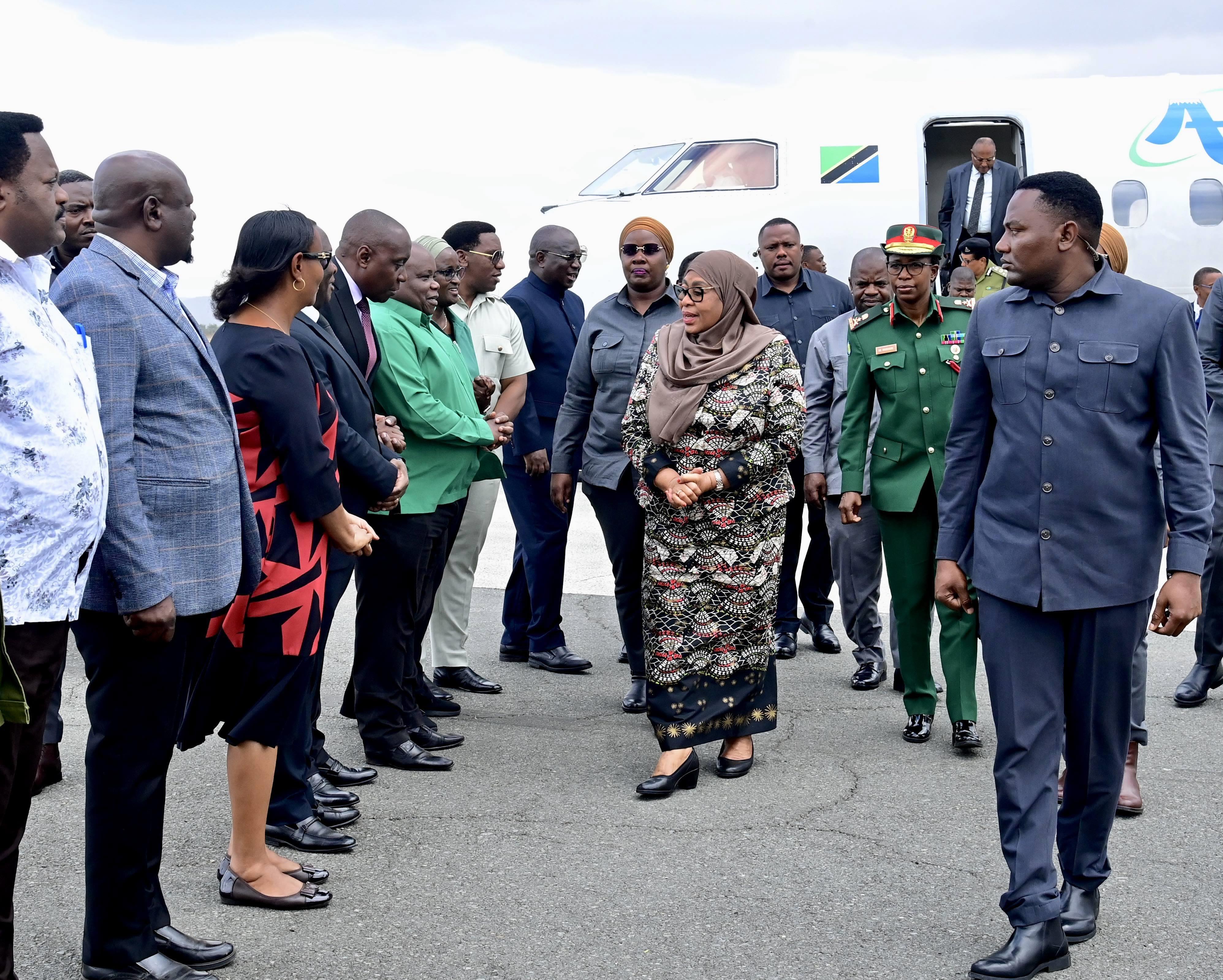 Rais Dkt. Samia awasili Kiwanja cha Ndege cha Kimataifa cha Kilimanjaro, (KIA) safarini kuelekea Arusha, tarehe 21 Novemba, 2025