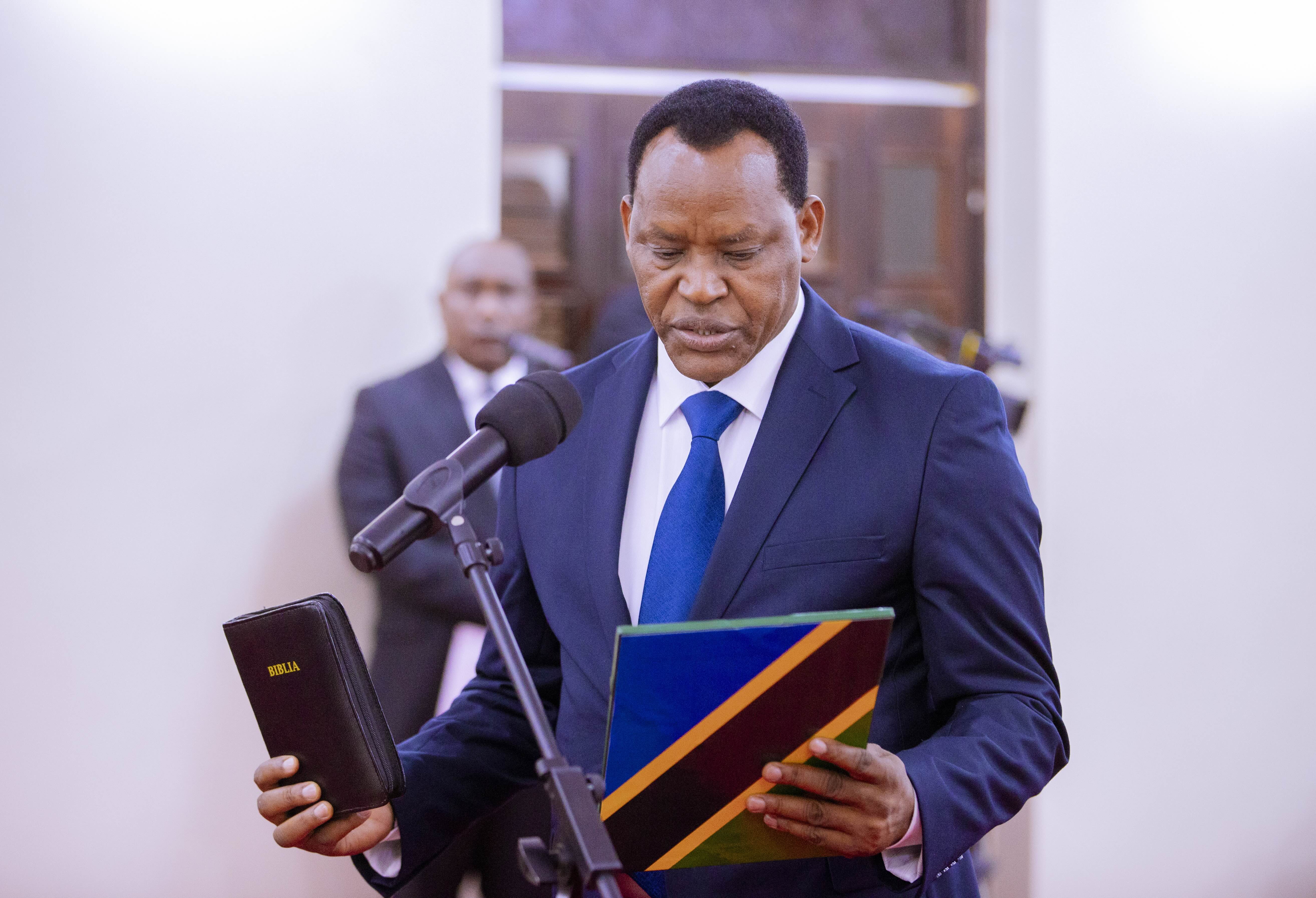 Rais Dkt. Samia Suluhu Hassan amuapisha Dkt. Mwigulu Lameck Nchemba kuwa Waziri Mkuu wa Jamhuri ya Muungano wa Tanzania, Ikulu Chamwino mkoani Dodoma, tarde 14 Novemba, 2025